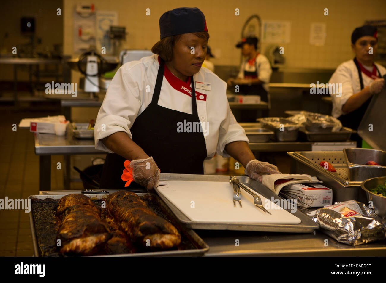 Inelle Harrison Food Service Specialist With Mess Hall 455 Camp Johnson Sets Down A Sanitized Tray During A Chef Of The Quarter Competition At The Yale Haerter Mess Hall Camp Lejeune N C